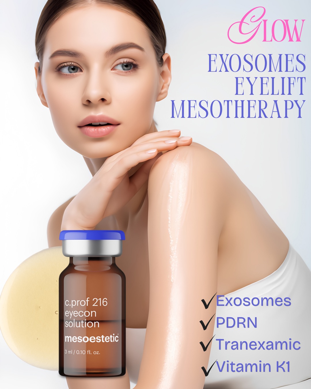 Η Glow Exosomes EyeLift Mesotherapy αποτελεί μια εξειδικευμένη θεραπεία για την ευαίσθητη περιοφθαλμική περιοχή, συνδυάζοντας τη δύναμη της μεσοθεραπείας με microneedling και προηγμένα βιοενεργά συστατικά.